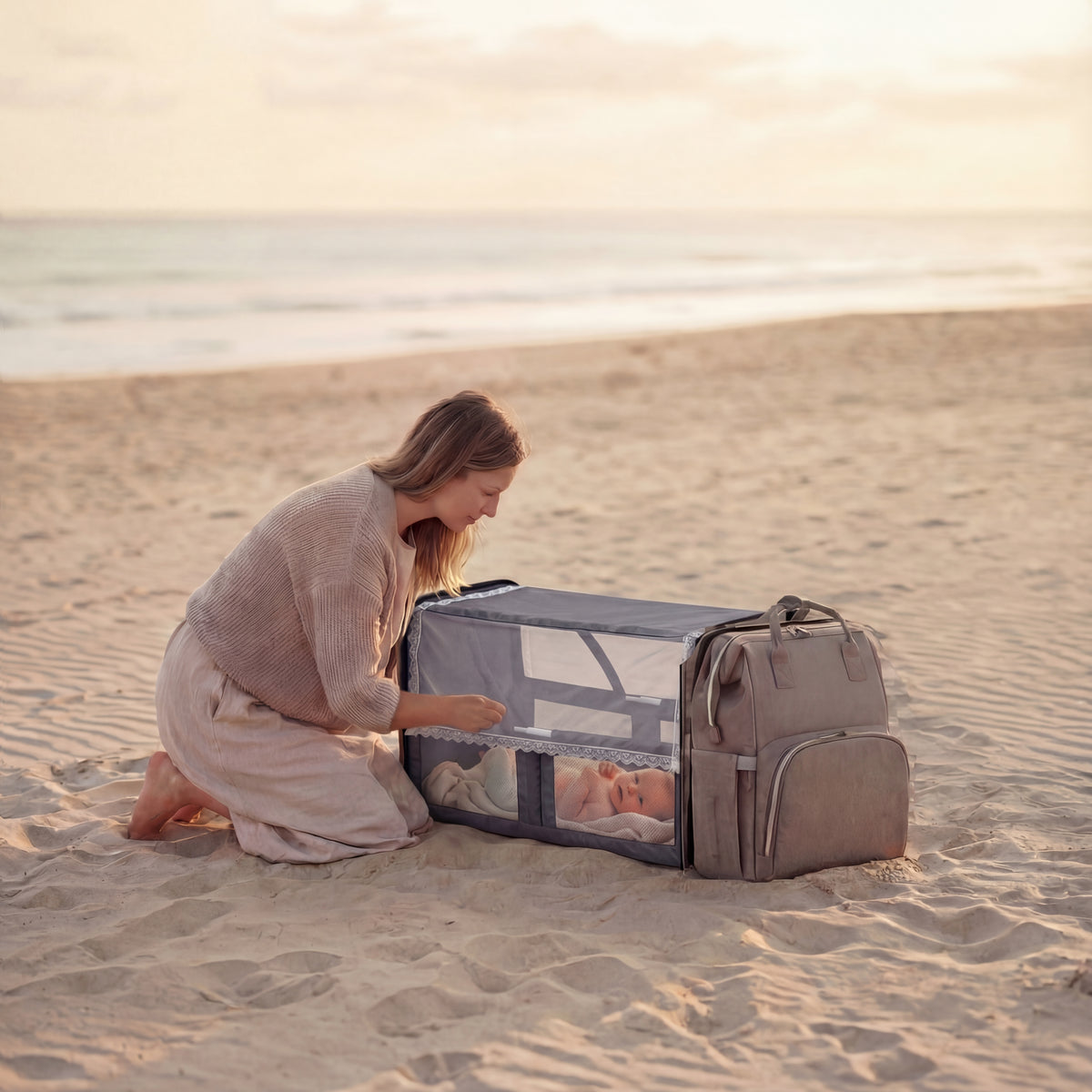 This versatile maternity diaper backpack combines style and functionality, featuring a foldable crib for on-the-go comfort and ample storage for all your baby essentials.